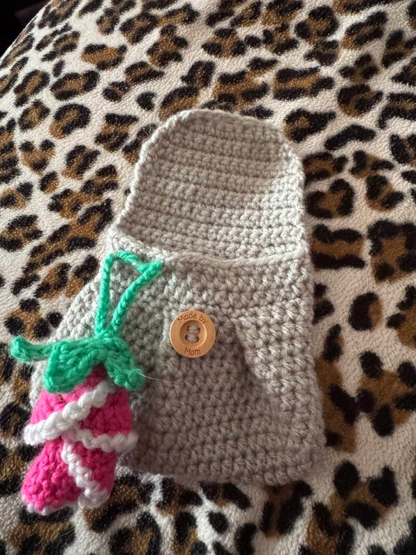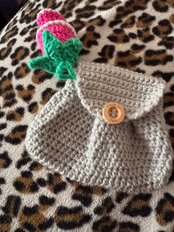 Crocheted mini rose pouch